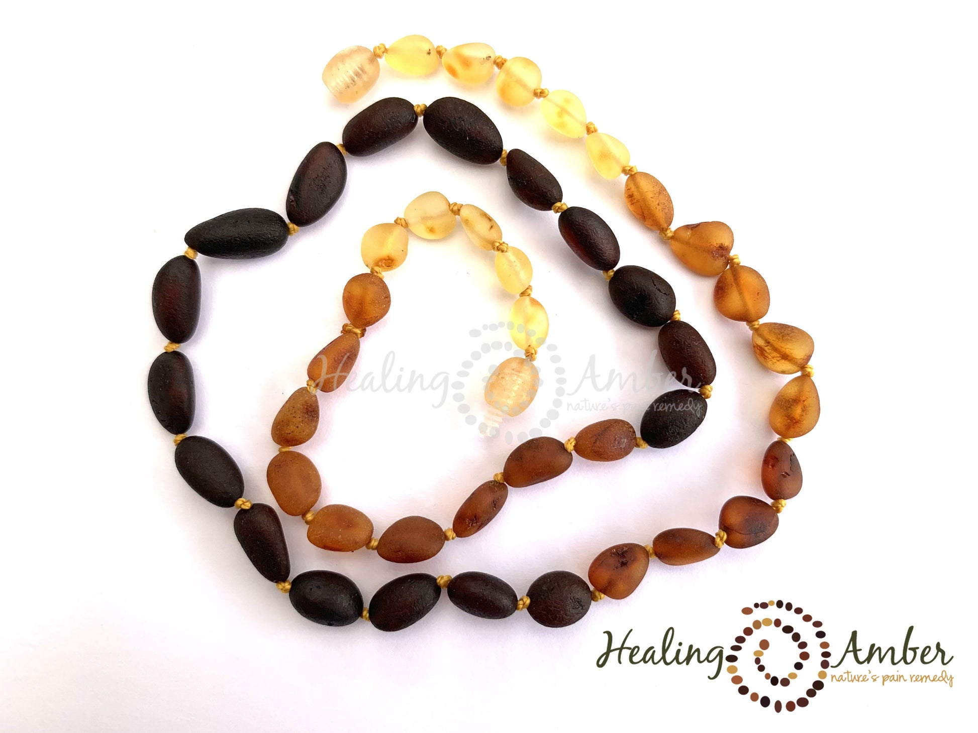 Our amber pieces are hand made by our team of artisans in Lithuania. All sizes are approximate and have up to a 1 inch variance with necklaces and 1/2 inch variance with bracelets. They all have smooth rounded edges and have many variations within their own category - no two beads are alike (colour, shape and size)!