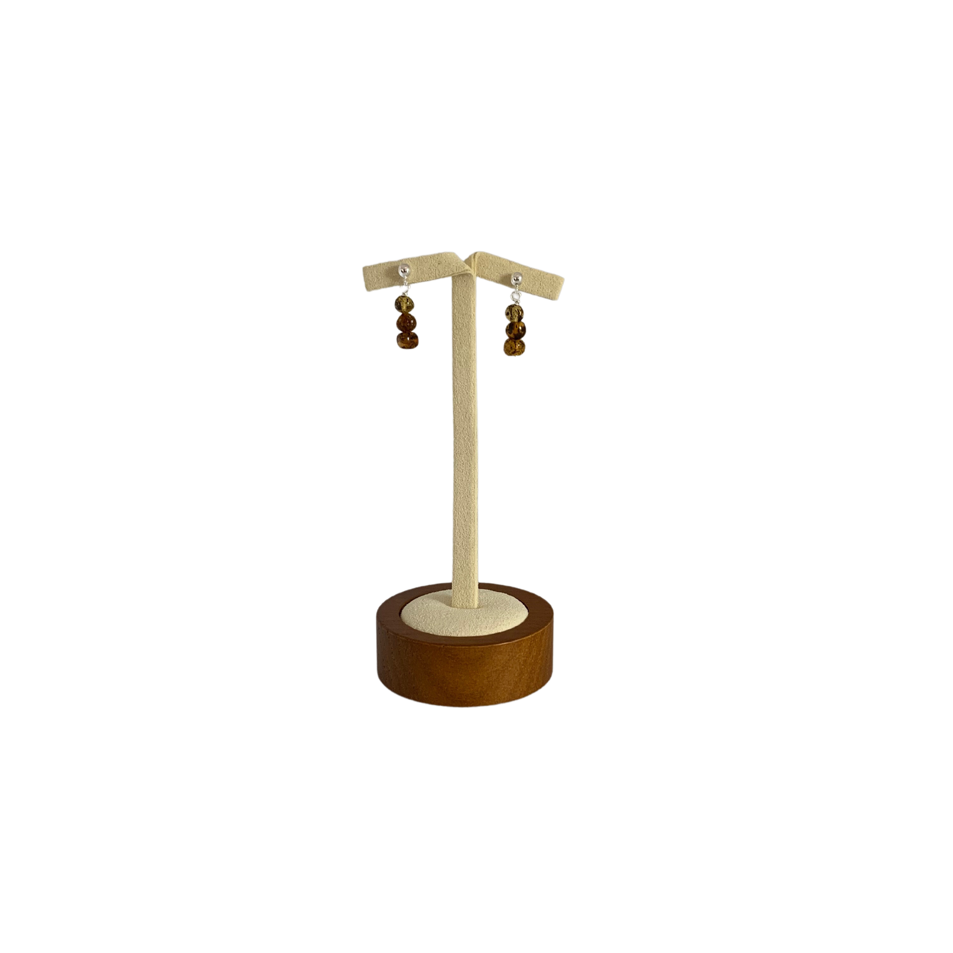 Sterling Silver-Olive Amber-Stud Earrings